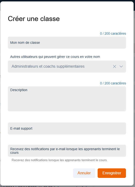 Une fois toutes les informations renseignées, cliquez sur le bouton orange Enregister pour finaliser la nouvelle classe.
