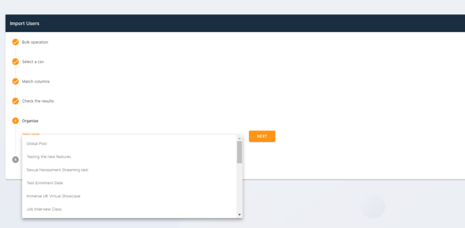 Les utilisateurs seront importés dans cette classe, mais ils ne recevront pas automatiquement d’invitation pour participer à la formation. Vous devrez envoyer les invitations depuis la page de cette classe. - En sélectionnant Global Pool :