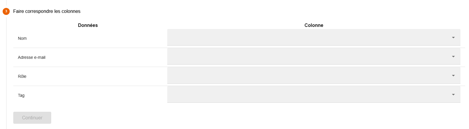Ensuite, vous devez indiquer quelles colonnes contiennent les noms, les adresses email, le rôle et le tag de l’utilisateur.