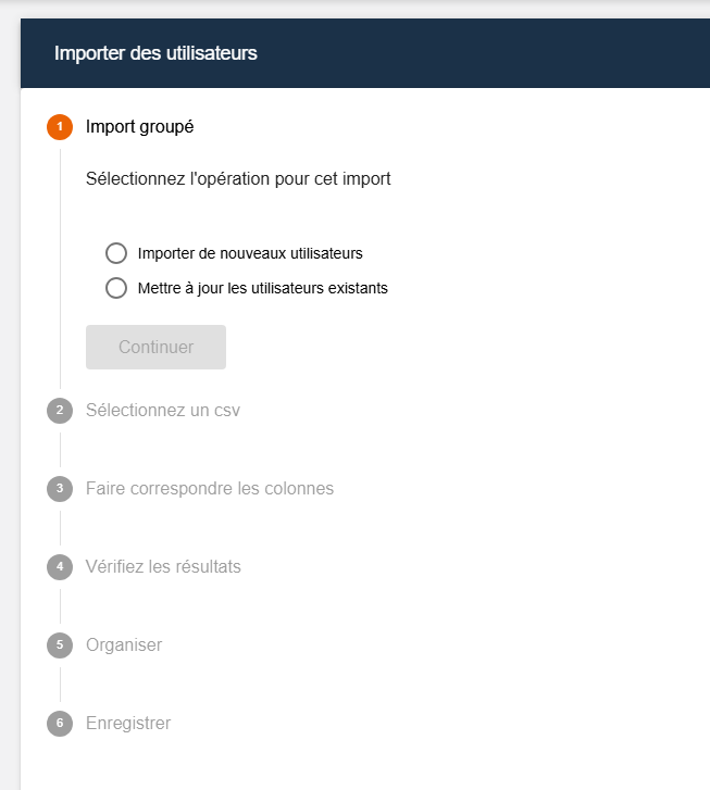 Si vous avez un grand nombre d’utilisateurs, il peut être plus pratique de les importer à partir d’un fichier CSV (comma separated values).