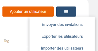 Pour cela, accédez à l’onglet Utilisateurs (réservé aux administrateurs), puis cliquez sur l’icône à trois lignes, où vous pourrez sélectionner Importer des Utilisateurs et choisir votre fichier (comme montré dans les images ci-dessous).