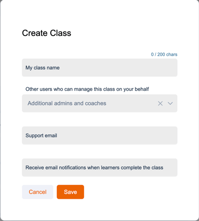Once all details are entered, click the orange Save button to finalize your new class.