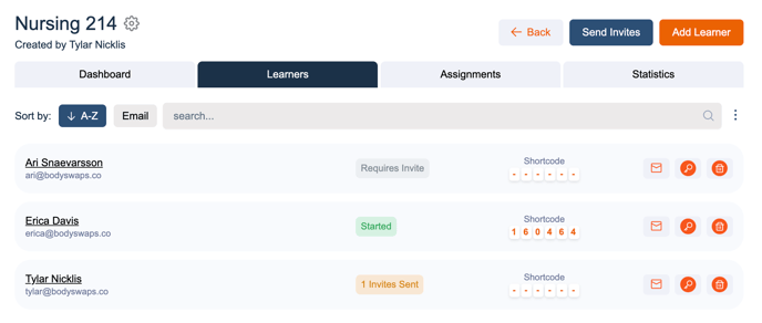 “Send Invites” button – Use this to send all current learners in the class an invite via email.