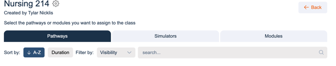 The Assignments tab allows administrators to assign learning content—either full pathways or individual modules—to their class.