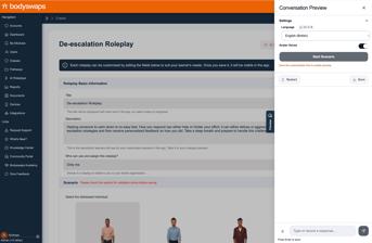 Learner Reports give educators deeper insight into how learners are progressing with Bodyswaps training. Instead of manually tracking performance, reports provide clear, personalised feedback that helps you understand both individual growth and group. Now available for all roleplays.